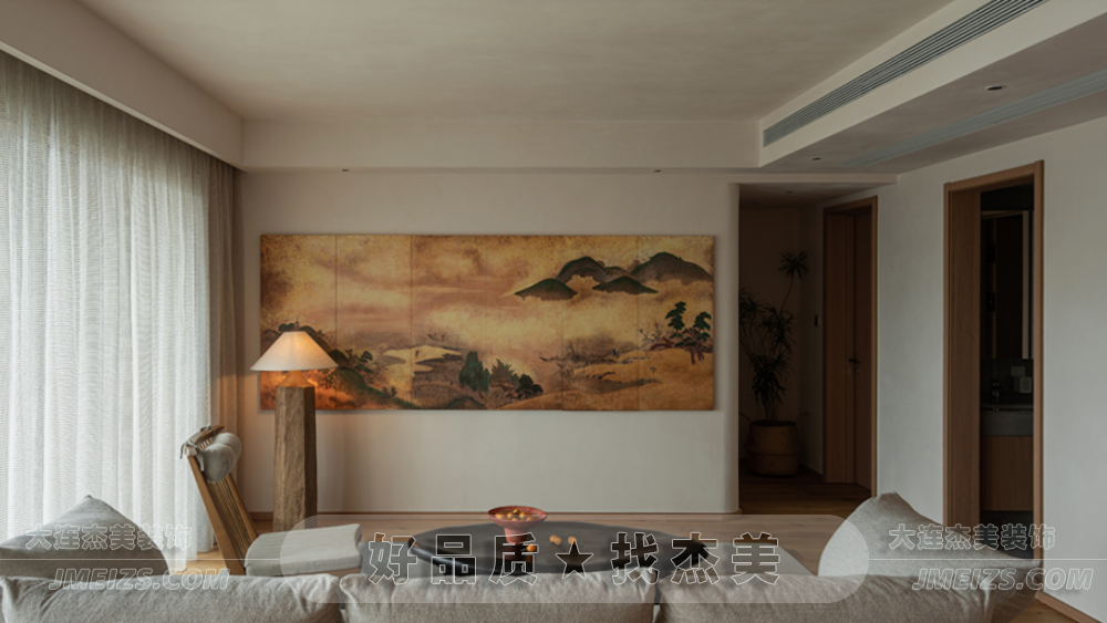 取而代之的是一幅描繪云霧繚繞的山水畫,它完美地展現了東方的禪意和自然美學。