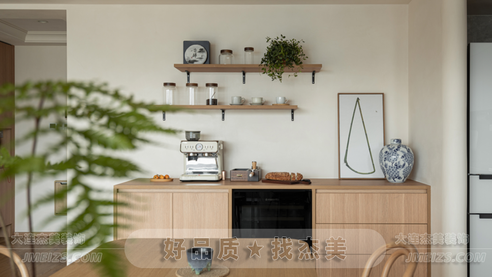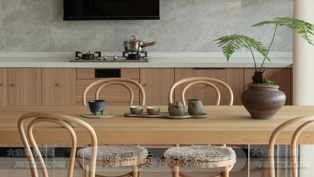 總的來說,這個(gè)餐廚空間的設(shè)計(jì)完美地融合了原木風(fēng)格和現(xiàn)代元素。每一個(gè)細(xì)節(jié)都充分體現(xiàn)了杰美裝飾設(shè)計(jì)師的匠心獨(dú)運(yùn),為屋主創(chuàng)造了一個(gè)既實(shí)用又美觀的生活空間。
